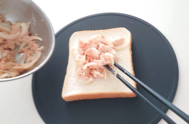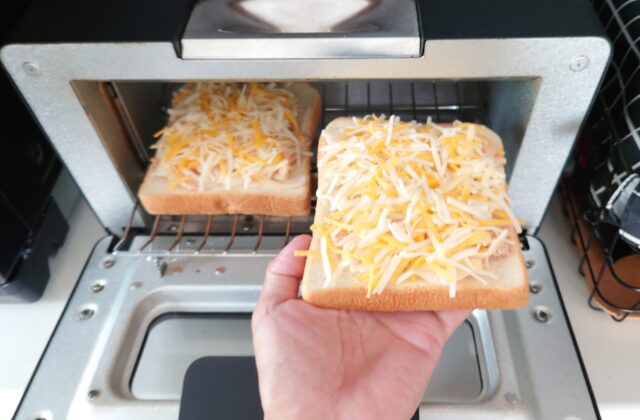 - ②を食パンに乗せたら、チーズを乗せて、オーブントースターで5分程焼く。